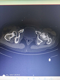 手术由骨科副主任卢山主刀,麻醉起效后,对患者左侧病变股骨头进行手术,手术机器人“天玑”将机械臂准确移动到手术操作位置(患者左侧),医生按照机器人规划通道精准置入导针,通过C型臂确认无误后,准确置入环钻,在通道下彻底清除病灶,后取髂骨行打压植骨。手术顺利完成,术后当天患者疼痛症状明显缓解。