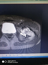 置入导针定位坏死区域进行病灶清除+植骨术: