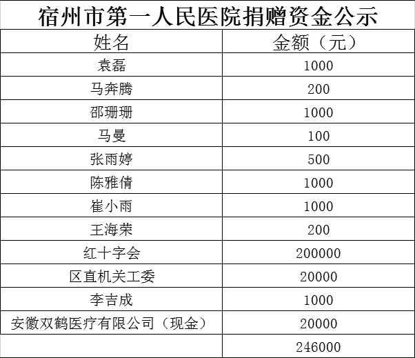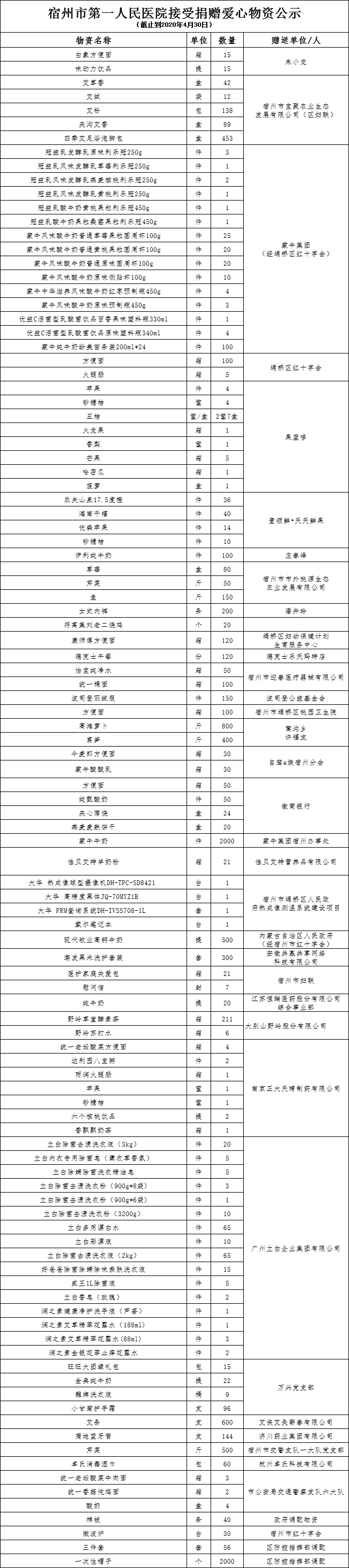 宿州市第一人民医院接受社会各界物资捐赠公示