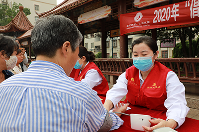 为提升广大市民的绿色环保理念,培育健康的生活方式,引导广大市民养成讲文明、讲卫生的良好生活习惯。7月13日,我院文明办组织部分医护志愿者来到北关街道华地社区,开展2020年“倡导绿色环保理念、培育健康生活方式”主题活动。来自心内科、神经内科、肾内科、呼吸内二科、肝胆外科、重症医学科、儿科、营养科等科室的14名专家志愿者参加此次活动。