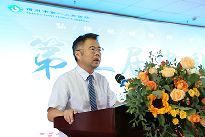 区卫健委朱燕副主任代表区卫健委及党组成员,向日夜奋战在一线岗位上的各位医师致以节日的问候和崇高的敬意。她希望我院全体职工继续发扬潜心躬耕,追求卓越的精神,开拓进取、顽强拼搏,为快速提高医院的医疗技术水平和服务能力,促进医院又好又快的发展而努力。