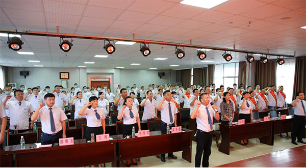 最后,王秉璞书记带领大家重温《中国医师节宣誓誓词》。大会在全体人员共唱《我和我的祖国》的歌声中圆满结束。