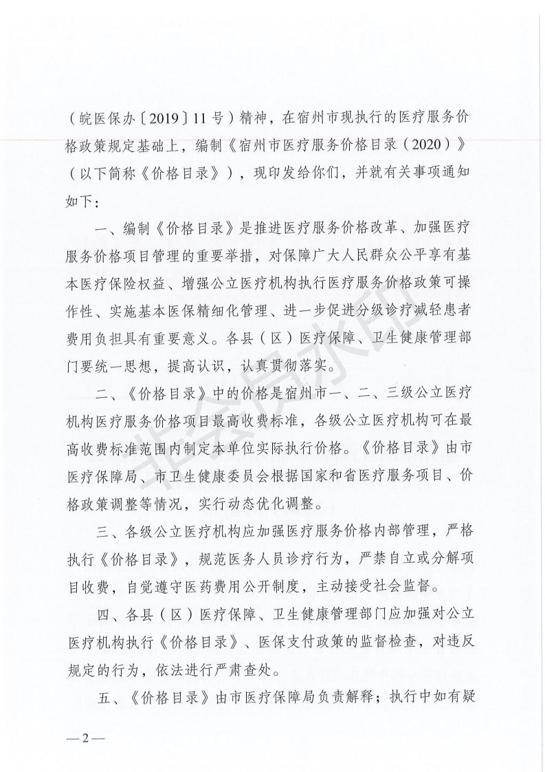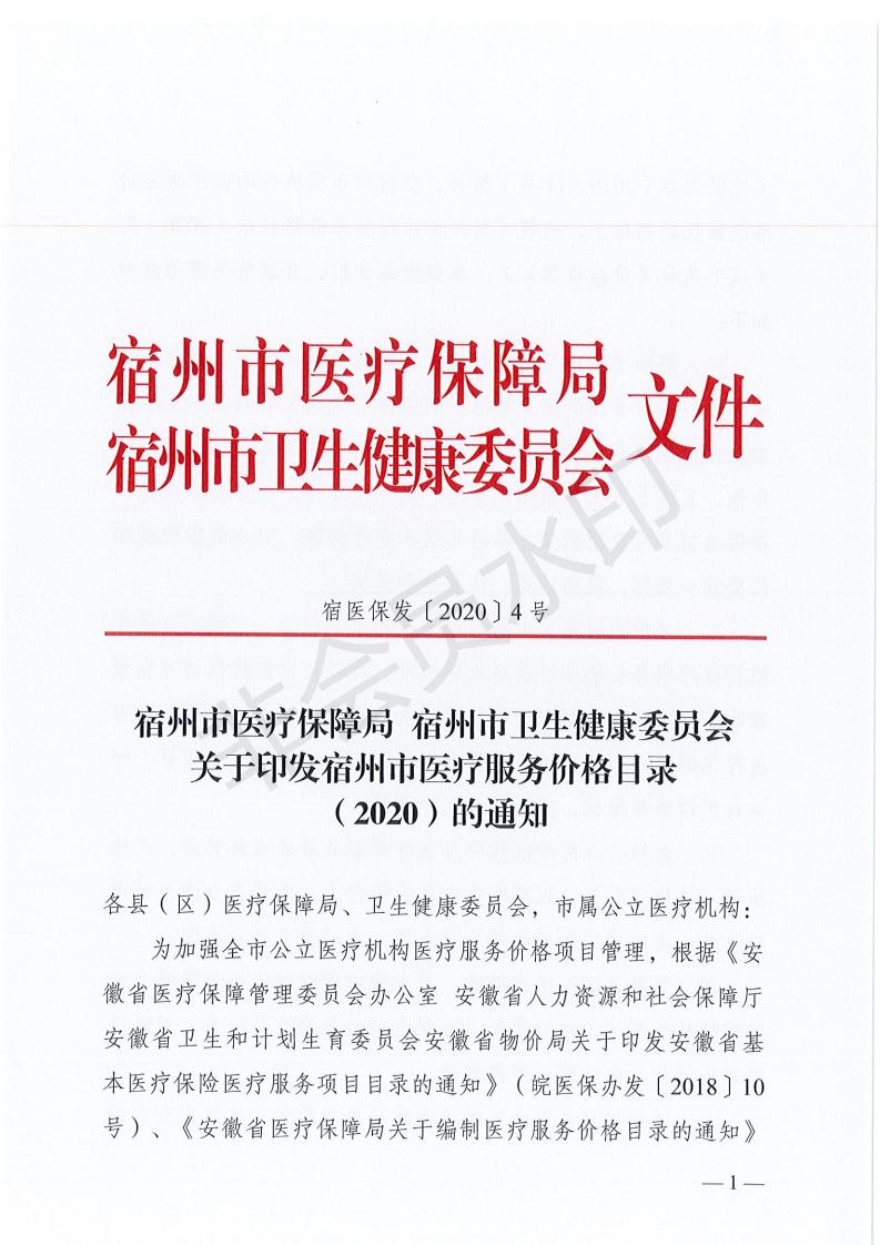 宿州一院医疗服务价格价格目录文件(2020)4号文件