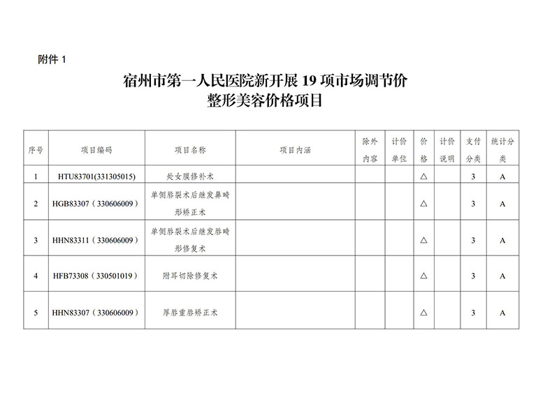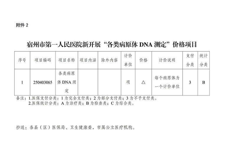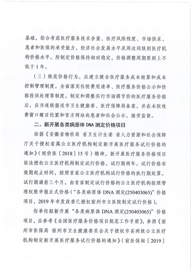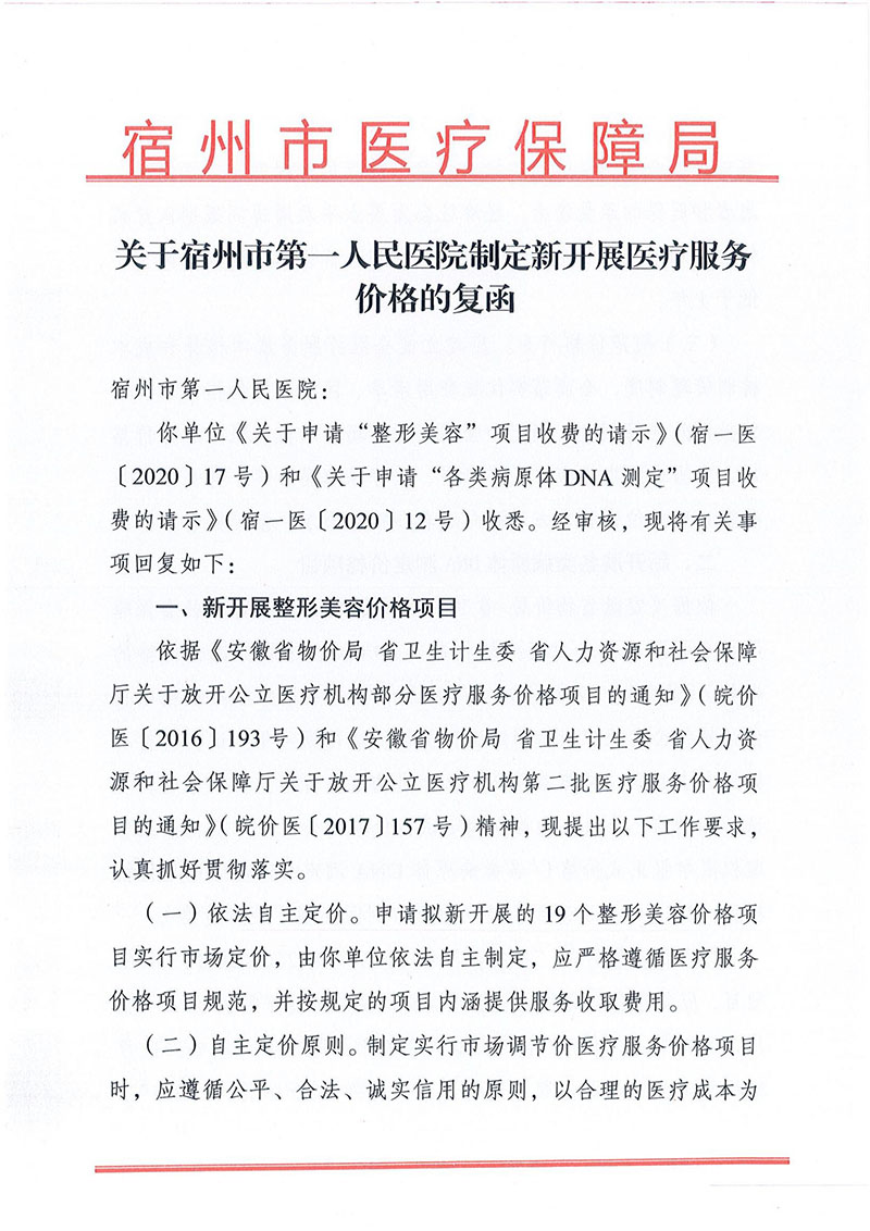 关于宿州市第一人民医院制定新开展医疗服务价格的复函