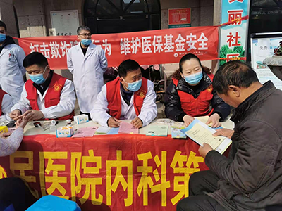 3月20日,我院内科第二党支部部分党员志愿者与医保科工作人员走进明日小区护理站,共同开展了维护医保基金安全,打击欺诈骗保行为专项宣传,并对社区居民开展了义诊活动。