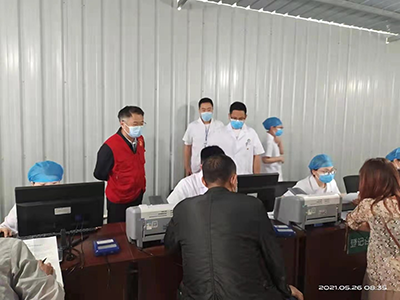 在我院新冠疫苗接种期间,院领导及各行管职能科室抽调工作人员前往疫苗接种现场,引导维持秩序,耐心为预接种人员讲解疫苗接种相关注意事项。疫苗接种现场设置16个咨询登记台和20个接种台。没有节假日休息,加班加点、争分夺秒的工作,全力保障疫苗接种工作有序进行,保质保量的完成接种任务,用实际行动展现党员干部在疫苗接种工作中的践初心担使命。