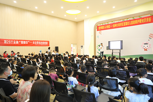 眼科曹天龙主任现场给小朋友及家长讲解眼睛的构造、近视形成的原因、近视的预防以及日常生活中如何保护视力等方面的知识,并讲解少看电视、少玩电脑、不用脏手揉眼睛、做眼保健操等各种保护眼睛的方法。