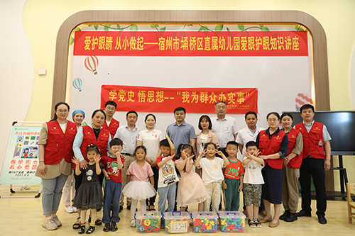为持续深入开展党史学习教育,围绕“学党史 悟思想 我为群众办实事”开展系列活动,6月4日下午,我院党委委员邵明玉、行政支部书记雷亮、副书记刘虎带领行政支部部分党员并联合眼科专家团队,走进宿州市埇桥区直属幼儿园,开展以“关注普遍的眼健康”为主题的全国爱眼日健康义诊活动。