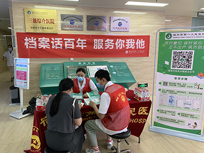 活动吸引了许多患者及家属前来咨询,志愿者们通过发放宣传单,现场讲解等方式给病人及家属普及了“国家档案日”相关知识,讲解了病案的重要性,提升社会对病案的认知。活动现场介绍了我院推出的“病案网上预约复印邮寄”特色服务,病人只要在家里动动手指操作手机,就可以自提或快递邮寄病历到家,这项服务极大减少了病人往返医院的时间,切实解决了病人复印病历的不便,得到了广大患者及家属的称赞。