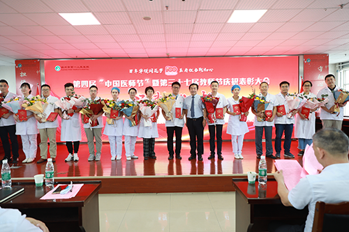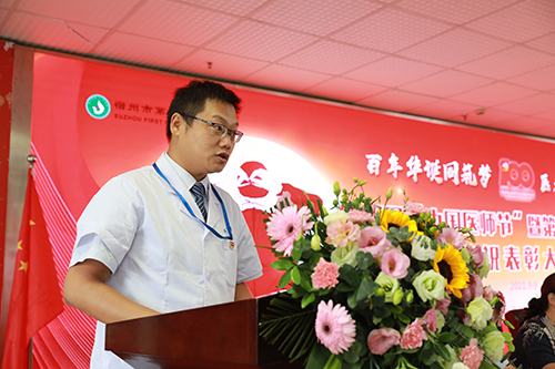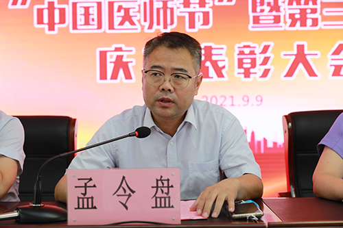 孟令盘院长代表医院领导班子并以一名医师的身份,向长年奋战在一线的全体医师表达了节日的问候,他提出几点要求:一是要以人为本,打造一支技术过硬的医师队伍,医务人员要尊师重道、团结协作、谦虚谨慎、不骄不躁,主动学习、超前学习、终身学习不断地自我完善;二是要以德为先,营造一片风清气正的发展环境,努力打造一支医德医风好、业务能力强、工作作风正、服务水平高的专业技术队伍,全心全意为病人服务;三是要提升能力,探索一条综合全面发展的道路,以“三甲”创建为契机,全面提升医院核心管理能力和技术水平。