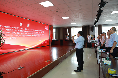 最后,户学敏副院长带领全体人员庄严宣誓,秉持“诚信、求实、精医、创新”的院训,坚持“至精、至诚、至微、至美”的服务理念,为把我院建设成为“技术先进、服务优良、管理完善、员工自豪”的三级甲等医院而努力。