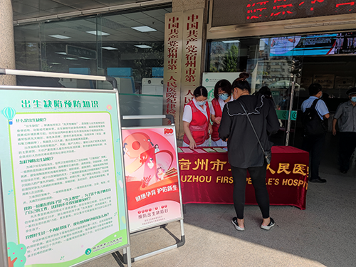 9月12日,我院公共卫生科联合产科医护人员在一楼门诊大厅,举办“健康孕育,护佑新生”预防出生缺陷日宣传活动。在活动现场设置了咨询台,向孕产妇们现场宣传讲解预防出生缺陷防治科普知识。增强群众优生意识和风险防范能力,引导群众接受知识、转变态度、改变行为。普及与怀孕生育有关的心理、生理基本知识,讲解孕前准备和孕前优生健康检查的内容及意义,宣传惠民相关政策以及再生育风险防范。志愿者们前往产科门诊,向孕产妇普及优生科学知识:婚前、孕期保健、产筛和诊断、0-6岁儿童残疾筛查、新生儿疾病筛查的重要意义和内容等。此次宣传活动制作宣传板报2块、发放宣传彩页200余份,咨询人数达200余人次。