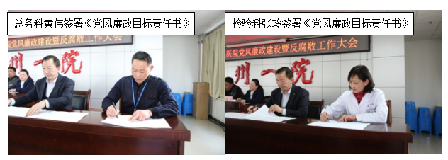 会上深入学习了埇桥区纪委九届二次全会精神和全区卫计系统党风廉政建设暨反腐败工作大会精神。院纪委书记支淑华代表院党委、院纪委作了《2016年党风廉政建设暨反腐败工作报告》,并对2017年度党风廉政工作进行了安排部署。部分科室负责人进行述廉述责,接受组织考问。院党委书记王秉璞从坚持全面从严治党、从严落实“两个责任”方面,代表院党委对参会的支部及科室负责人进行了集体约谈,现场签订了《宿州市第一人民医院党风廉政目标责任书》。