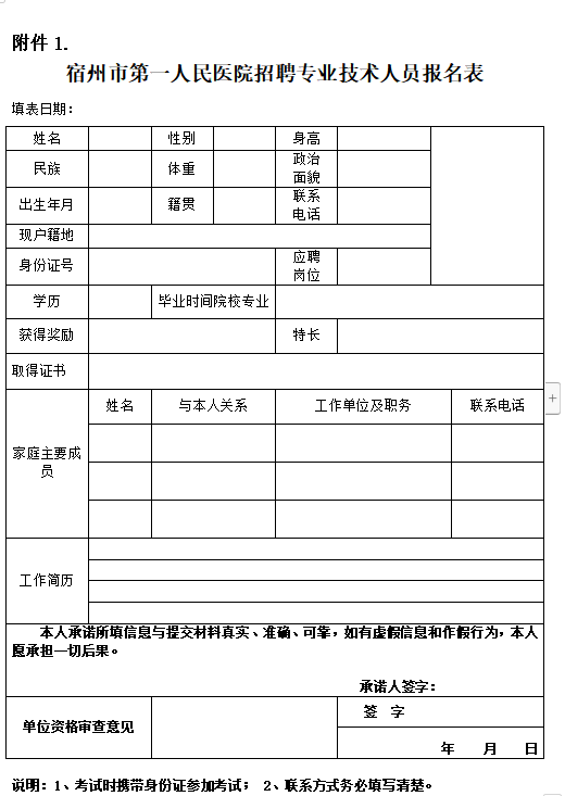 (3)报名地点:宿州市第一人民医院人事科(银河一路利群超市西观光电梯5楼529室)