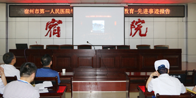 2016年6月16日下午,宿州市第一人民医院党委组织全体党员、中层以上干部在门诊楼八楼多功能会议室收听收看何必山同志先进事迹报告会。