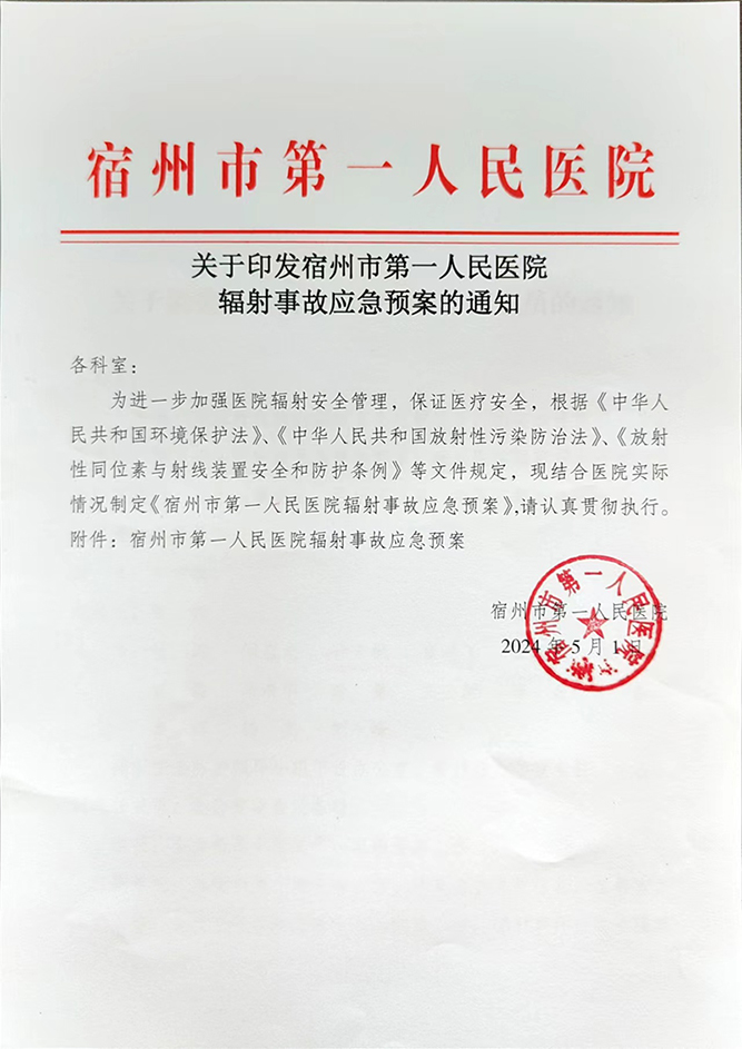 关于《宿州市第一人民医院辐射事故应急预案》公示