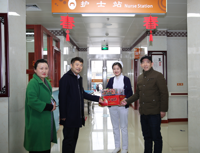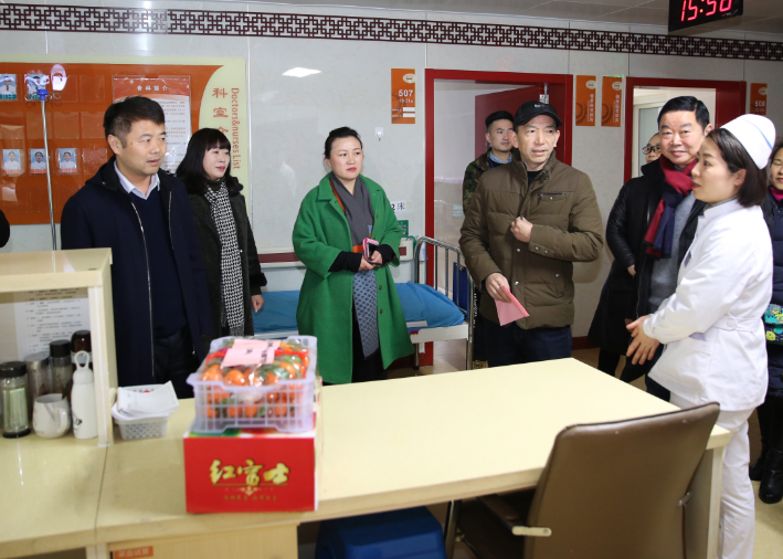 埇桥区卫计委党组书记、主任朱明同志、吴猛会长莅临我院慰问一线职工,我院院长孟令盘、党委书记王秉璞、副院长孙建田、工会主席、副院长李秀君、纪检书记支淑华等陪同,先后到南院区及院本部的临床医技科室,向春节坚守在临床一线工作岗位的医护人员表示亲切慰问。每到一处领导们与坚守岗位的职工亲切交谈,感谢他们为医院及患者的辛劳付出,并向大家致以节日的问候。院领导的亲切慰问让大家倍感温暖,在新春的氛围中感受到了浓浓暖意。
