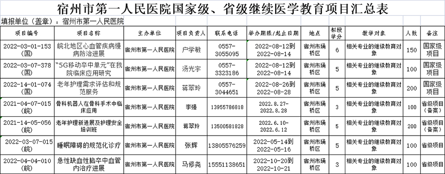 2022年度国家级、省级继续医学教育项目