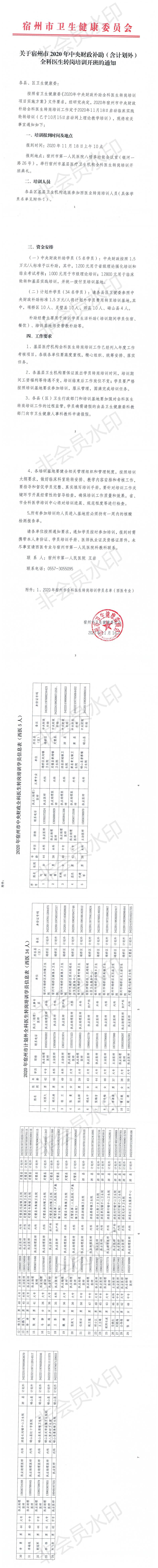 关于宿州市2020年中央财政补助(含计划外)全科医生转岗培训开班的通知