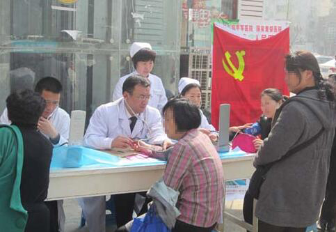 4月2日上午,宿州市第一人民医院内科党支部组织心血管内科、普内科、小儿科、神经内科等内科系党员在乐天玛特超市广场开展为群众“办好事、办实事”社区义诊服务活动,为埇桥区北关办事处华地社区的居民提供义务健康咨询及诊疗服务活动。参加义诊的医务人员热情接待了每一位到场的群众,对他(她)们提出的健康咨询给予了专业的诊断和指导。为群众测血压、查体,普及医学常识和健康知识,倡导健康生活方式,对部分慢性病病人进行合理的用药指导。短短一上午时间共接待一百多名社区居民义诊,发放健康教育处方、宣传资料200余张。