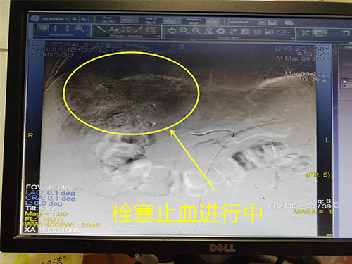 栓塞止血进行中