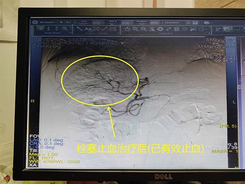 栓塞止血后评估,已有效止血。