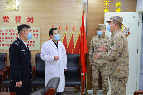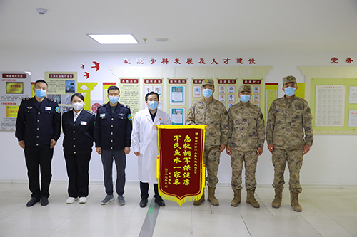 3月13日,中国人民解放军73089部队官兵将一面写有“急救拥军保健康 军民鱼水一家亲”的锦旗,送到了我院,感谢我院积极与驻训部队协同共建,参与探索军地伤兵员后送科目训练。