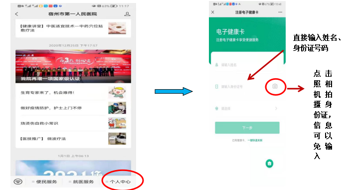 (1)在微信中关注宿州市第一人民医院公众号