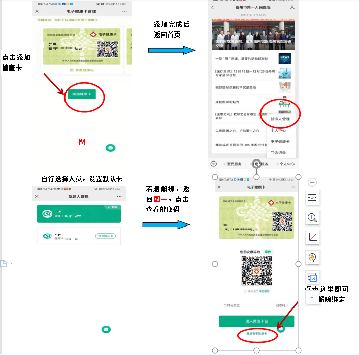 如果本人在我院已经绑定电子健康卡,想帮病人绑定,进入电子健康卡界面,如下图: