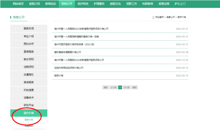 (2)点击医疗价格,即可看到服务价格公示