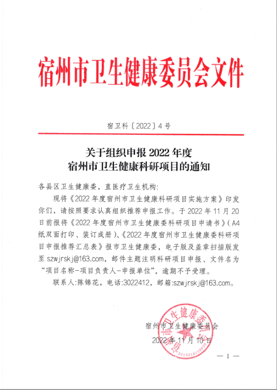 关于组织申报2022年度宿州市卫生健康科研项目的通知