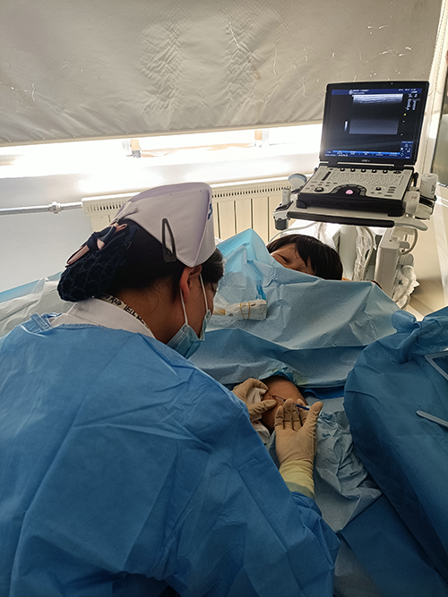 近日,我院护理门诊接诊一名需要PICC置管的患者,按照静脉治疗操作流程和规范,PICC专科护士马兰和钱稳两位护士长通过B超评估患者的血管和穿刺部位,然后与患者家属进行有效沟通后,签订PICC置管告知同意书,成功为患者进行了置管。