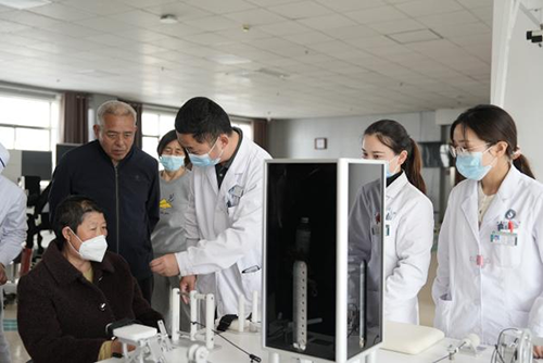 中医治未病诊疗中心副主任伯羽现场指导帕金森病患者康复锻炼。