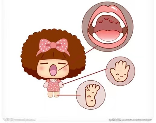 先出现发烧,手心、脚心出现斑丘疹和痕疹(疹子周围可发红),口腔粘膜出现疱疹或溃疡,疼痛明显。部分患者可伴有咳嗽、流涕、食欲不振、恶心、呕吐和头疼等症状。少数患者病情较重,可并发脑炎、脑膜炎、心肌炎、肺炎等。