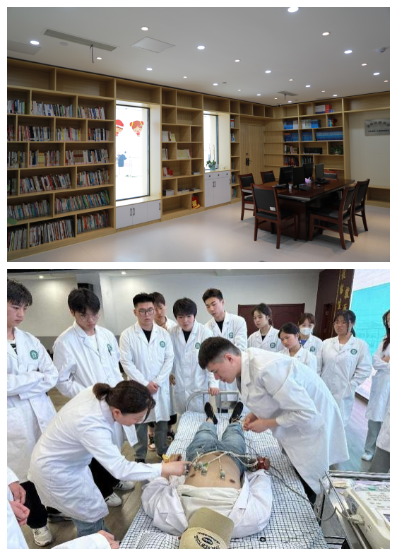 共有4个教室。其中大型会议室可同时容纳200人开展教学、会议等活动,多媒体教室可同时容纳100人开展教学、会议等活动。临床思维室配有40台电脑,安装了临床思维训练系统、在线考试系统等。 另设有实体图书阅览室供学员阅览相关医学类和人文和社科类书籍。授予培训学员“万方医学网”、临床思维训练系统、电子病历系统等相关系统账号,并购买“助理全科医生远程理论教学课程”,为实现培训学员医疗、科研、学术协同发展奠定基础。教学用房面积达2500m2;图书室实体存书共10余类,达 2000余册 ,能够满足学员的日常查阅、下载需求。