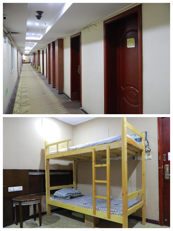 宿州市第一人民医院租用临近的盛世豪都宾馆2层,可满足约150人住宿需要,且男女生分楼层住宿,配有专职宿舍管理员,设有自习室,配备洗衣机、淋浴间、空调、网络等生活设施,建有食堂,满足培训学员的生活需求。