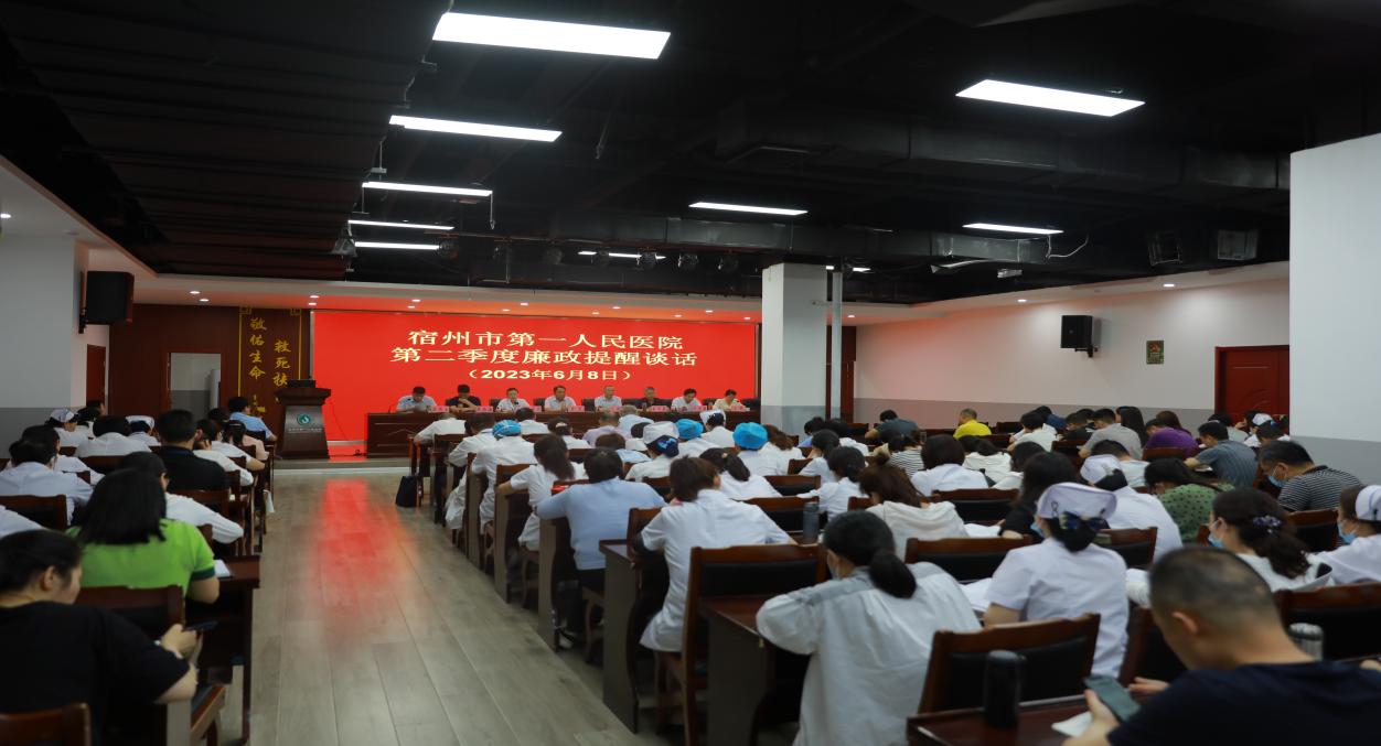 为加强医院廉政建设和行业作风建设,提高干部职工廉洁自律意识和拒腐防变能力,6月8日下午,宿州市第一人民医院开展第二季度集体廉政提醒谈话暨行风工作会议。会议由党委副书记、纪委书记王辉主持,院党政领导班子成员及全体中层干部200余人参会。