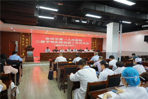 孟令盘院长做动员讲话,他要求在今后的工作中,三级甲等综合医院创建将是医院发展的首要目标及任务,要以《三级医院评审标准安徽省实施细则》为指南,以持续改进医疗服务质量为主题,围绕“质量、安全、服务、管理、绩效”五大要素,坚持“以评促建、以评促改、评建结合、重在内涵”的工作方针,通过加强组织领导,压实工作责任,推进监督落实,大力宣传报道等保障措施,对标“三甲”创建时间表,持续改善创建指标,以昂扬的斗志、坚定的信心、扎实的作风、全身心地投入到创建“三甲”的工作中去,坚持以创建促融合、以创建促发展、以创建强服务,集全院之智、举全院之力、倾全院之心。通过三级甲等医院的创建和达标过程,实现医院管理制度化、规范化、标准化、科学化,全面促进医疗服务质量持续改进,力争2024年顺利通过专家评审。