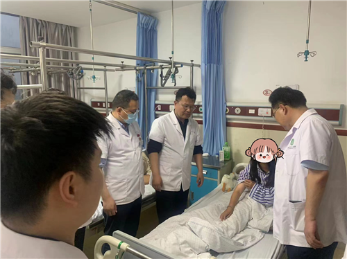 在教学查房中,朱院长认真倾听患者的感受,和病人及家属进行深入的交流,追踪患者病情,深入浅出的讲解疾病相关知识,不仅让患者及家属感受到了医院的人文关怀,也让他们对南区骨科的医护工作更加满意。