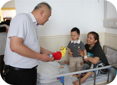院纪检副书记、关工委办公室主任雷亮、儿科主任李宏和护士长刘婕同关工委和儿科的工作人员一同走进病房看望住院小朋友,送去节日的问候与祝福,祝愿孩子们能够早日康复,快乐成长。