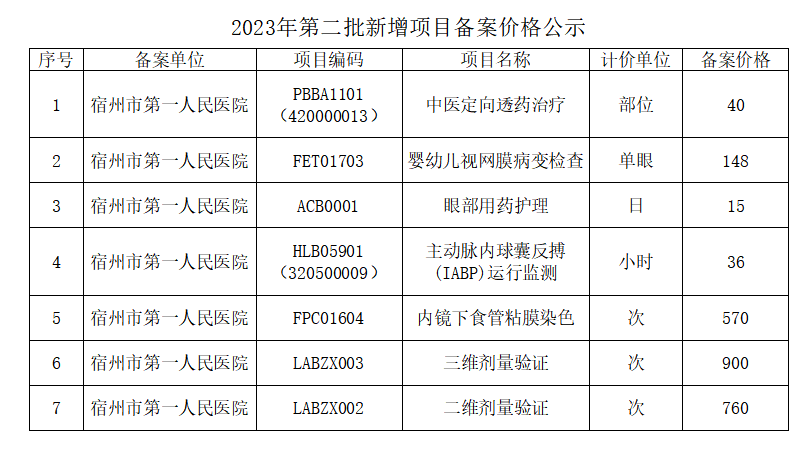 2023年第二批新增项目备案价格公示