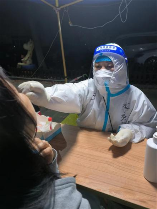 在推进新冠肺炎疫情防控工作中,她积极做好人力资源调配,落实“常态化”疫情防控,并身先士卒,带头冲在疫情第一线,即是指挥员又是战斗员,践行和弘扬伟大抗疫精神。2022年4月她带队逆行出征,驰援上海,发扬不畏艰险、连续作战的顽强作风,圆满完成援沪抗疫任务,7月受宿州市卫健委的委派进驻参与淮南方舱医院工作,11月带队进驻桃园方舱医院进行新冠肺炎的救治工作,进仓督导各项工作的落实,同时为患者提供服务及心理疏导。12月中旬她又负责亚定点医院新冠肺炎的救治任务,真正发挥了党员干部带头的作用。