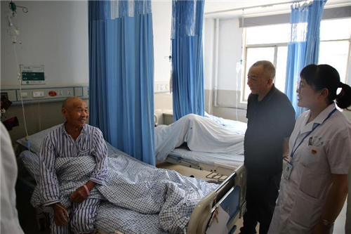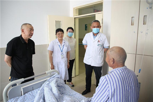 为充分体现基层党组织对老党员的关心和爱护,将组织的温暖送到党员心中。6月15日,在得知我院胃肠外科住进一名党龄59年的老党员患者后,院党委书记王秉璞和党委副书记、工会主席王辉一同来到胃肠外科,看望慰问住院老党员。王秉璞书记首先从胃肠外科曾春辉主任那里了解了患者的病情以及治疗方案,随后来到老党员的病床前进行深切慰问。
