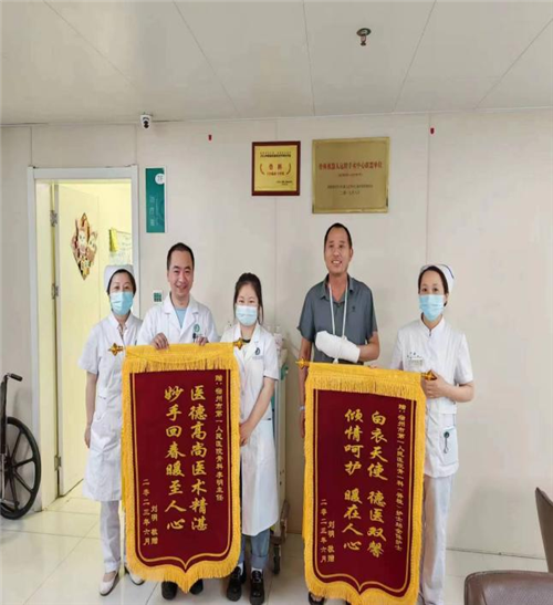 “我在来医院的路上,用毛巾紧紧握住出血的左手,血都渗透了毛巾,两只手止不住的抖,又痛又怕......当时真的不敢相信手指失而复得,至今还心有余悸”,后来患者回想入院时的情形不禁感叹。出院当天,患者亲自送来了两面锦旗,表达了对我院骨一科的感谢。看着患者康复的手指、满意的笑容,作为医护人员又一次深切体会到了平凡中创造新生带来的巨大喜悦。