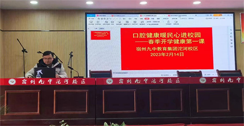 2月14日下午,宿州市第一人民医院公共卫生科联合埇桥区卫健委、区疾控中心,分别到宿州市第九中学的金海校区、沱河校区及磬云校区开展了视力、口腔、心理等专题健康知识讲座。