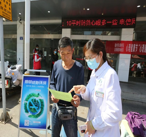 为普及烟草危害知识,传播戒烟理念,5月27日上午,我院公共卫生科联合营养科医务志愿者、埇桥区疾控中心工作人员,在华地社区开展了“世界无烟日”宣传活动。