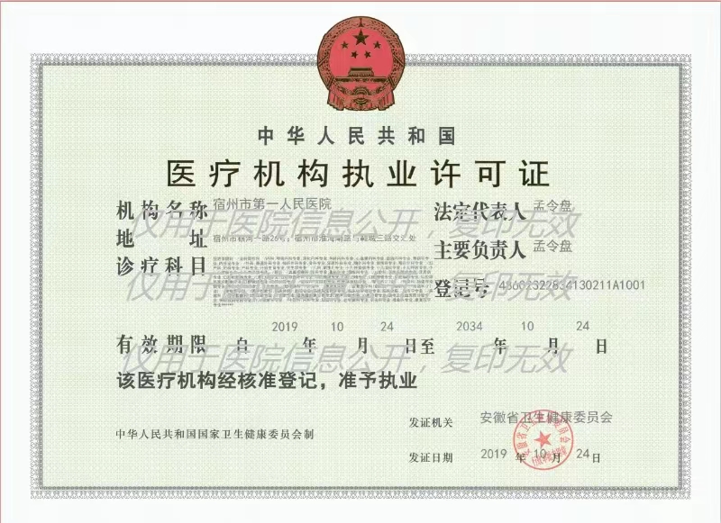 - 上一篇:宿州市第一人民医院执业许可证(副本)