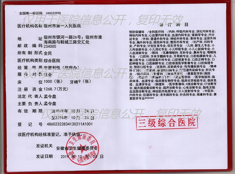 - 下一篇:宿州市第一人民医院执业许可证(正本)
