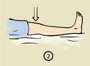 2.股四头肌等长收缩:取仰卧位,绷紧大腿前方肌肉,将膝盖往下压紧床面,保持10秒,再缓慢放松。(10次/组,每日5组)