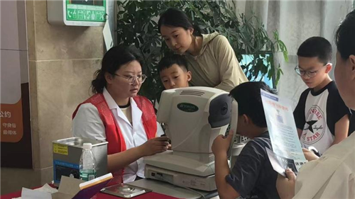 7月14日上午,我院视光中心走进宿州市图书馆开展关爱青少年近视义诊活动,为暑期来图书馆学习的青少年们普及科学用眼知识,免费提供眼健康检查。